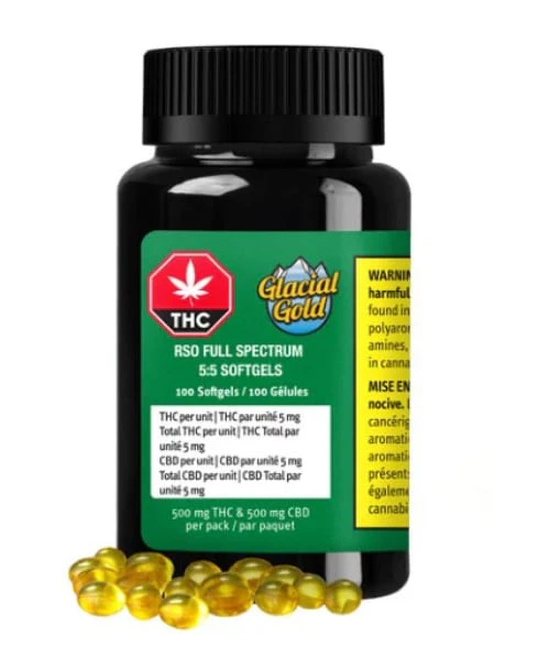 Glacial Gold | RSO Full Spectrum 5:5 THC:CBD Softgels | 100 x 5 mg/5 mg