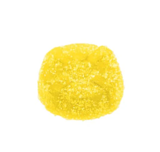 No Future's Pectin Yellow One tastes like tropical pineapples and mangoes and contains no gelatin at all. Single gummy per package with 10mg THC.