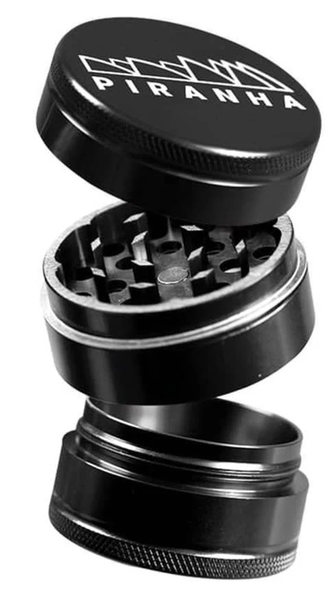 Piranha 3-piece grinders feature razor-sharp teeth that guarantee the perfect grind every time. The storage compartment without the screen allows for quick access to the goods, a more efficient grind, reduces the maintenances of cleaning, and eliminates the chance of screen damage. Built to last, these grinders are made from anodized medical-grade materials with strong magnets to ensure the grinder stays together on the go or even if dropped. The craftsmanship of these grinders stay true to the Piranha name with their razor-sharp teeth that shred herbs with a simple twist of the wrist. Just choose your size and colour and get on with your grind.
