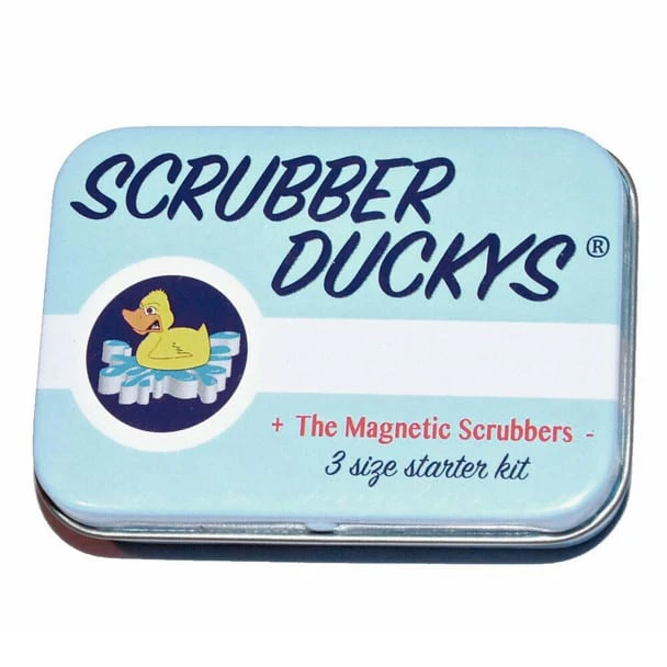 The Scrubber Ducky kit includes 5 magnetic scrubbers and one heavy-duty, rubber-coated, magnetic outer handle. Scrubber Ducky's are magnetic water wipe scrubbers! Drop a ducky into your water pipe to finally reach those grimy spots you never could before. Scrubber Ducky scrubbers are now washable and feature double-strength magnets! Each Ducky can also be cut to size to fit into smaller water pipes. For use with water-pipes, wine decanters, vases, baby bottles and more. To use opposite scrubbing sides, simply flip the outer magnetic handle. Watch your Ducky do backflips!