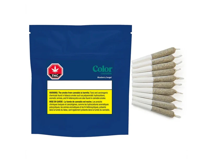 Blueberry Seagal is an indica-dominant hybrid that offers a sweet floral aroma and strong THC potency potential. Color Cannabis uses only the highest quality flower and cutting-edge cultivation techniques to ensure their pre-rolls provide a consistent and enjoyable smoking experience. Blueberry Seagal pre-rolls are perfectly packed with freshly milled flower for maximum flavour and potency, without any trim or shake. Their elevated growing practices, including full temperature and humidity control, hang-drying, and meticulous trimming, guarantee a premium product. The natural terpenes Beta-Caryophyllene and Nerolidol give off crisp notes of berry and pepper, providing a truly elevated cannabis experience. Each Blueberry Seagal pre-roll comes in a single-session size, weighing 0.35g each.
