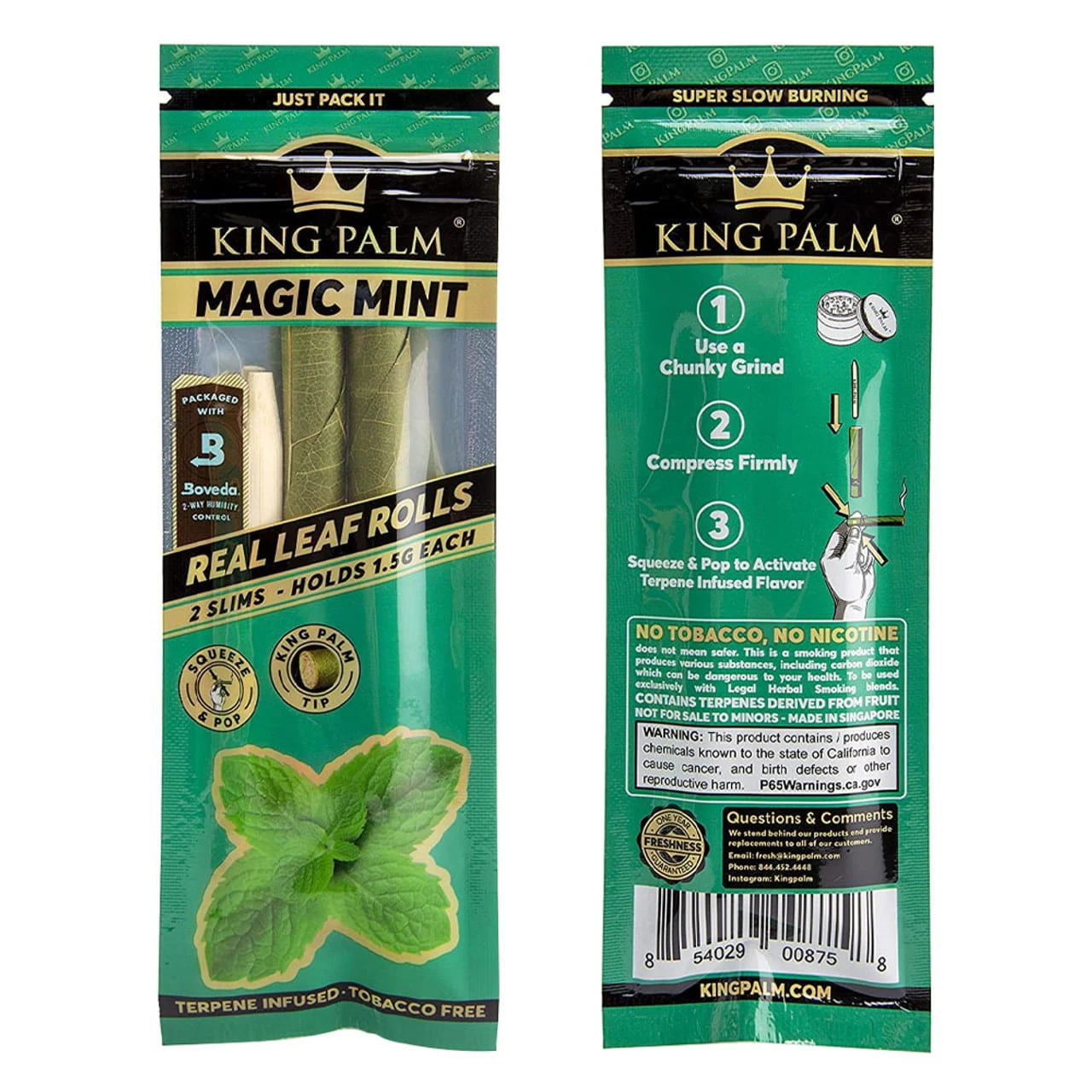These Magic Mint terpenes infused King Palm leaves are empty tubes that allow for a very easy filling process with the included bamboo packing stick. These Cordia leaves are tobacco free and do not contain any preservatives, artificial flavours, or glue. The installed corn-husk filter is flexible and allows you to squeeze or bite them as hard as you want to create a flavourful, tighter and cooler draw when smoking.